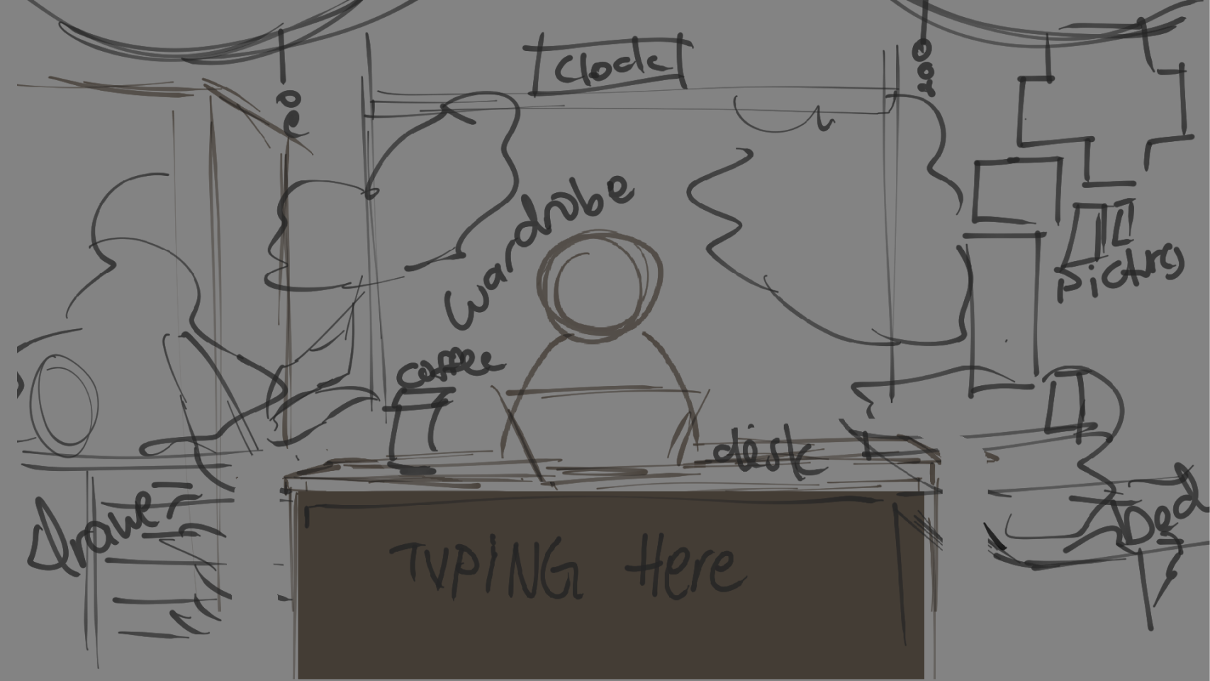 We began with quick concept sketches to define the game’s visual language — soft shapes, layered text, and floating elements that mirrored drifting thoughts.